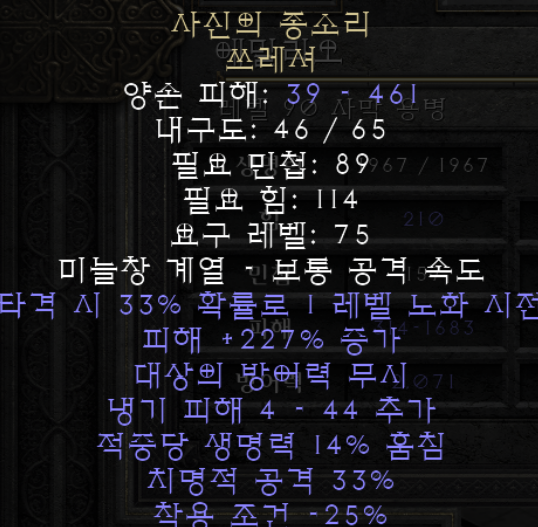 사신의 종소리의 핵심은 바로 타격시 33% 확률로 시전되는 1레벨 노화입니다.